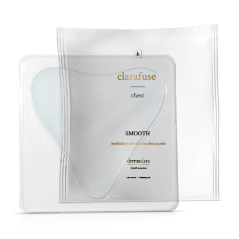 Clarafuse features medical grade silicone that adheres comfortably to the skin. It smooths the appearance of wrinkles, stretch marks, and other surface-level skin conditions – and is washable and reusable for up to 30 uses.